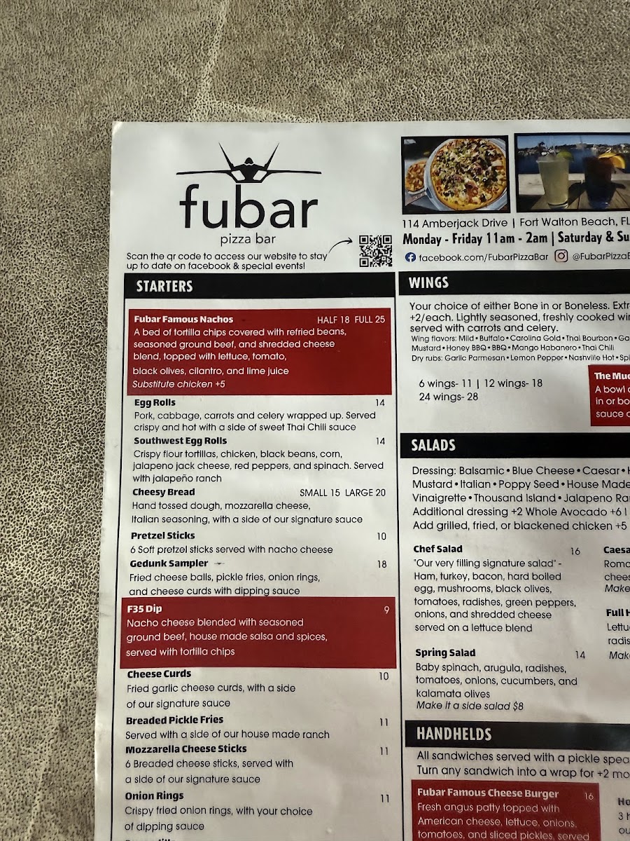 A bed of tortilla chips covered with refried beans, seasoned ground beef, and a shredded cheese blend, topped with lettuce, tomato, black olives, cilantro, and lime juice Substitute chicken 2.99 | Substitute pulled pork 3.99