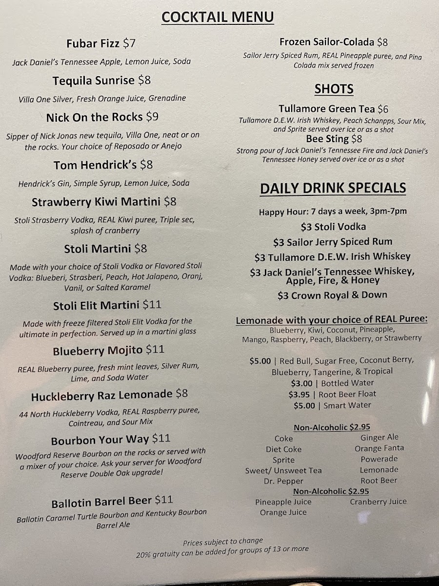 Typically includes Pepsi, Mountain Dew, ginger ale, fruit punch, pink lemonade, Mist Twst lemon lime, or Dr Pepper.