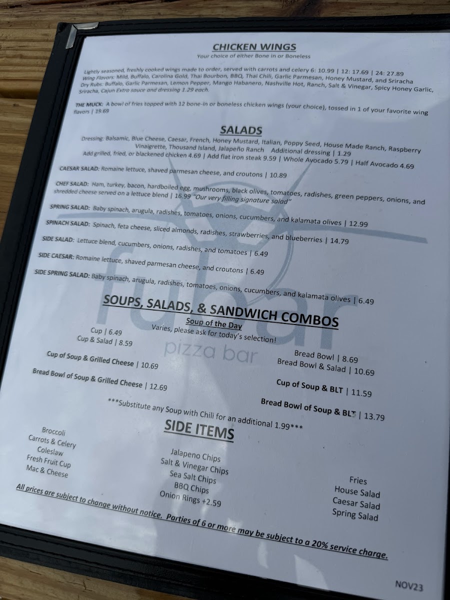 Lightly seasoned, freshly cooked wings made to order. Served with carrots and celery, and your choice of ranch or blue cheese dressing. 2 flavors per 12 wings | 1 flavor per 6 wings Wing Flavors: Plain, Mild, Buffalo, Thai Bourbon, BBQ, Thai Chili, Garlic Parmesan, Honey Mustard, and Zesty Sriracha Dry Rubs: Lemon Pepper and Cajun.